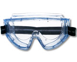 Chemical splash goggles feature indirect vent caps to restrict the influx of liquids. Panoramic view, Food grade flexible PVC frame...